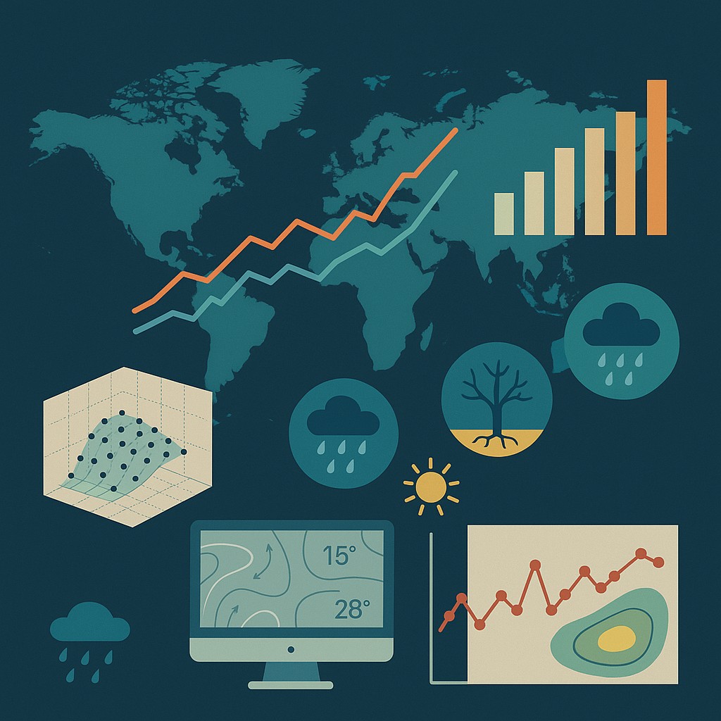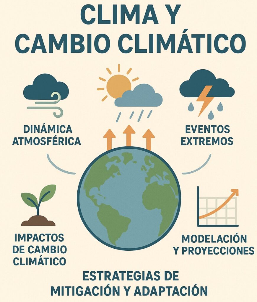 Esta línea de investigación se centra en el estudio de los procesos que determinan el comportamiento del sistema climático y en cómo las actividades humanas están alterando su equilibrio natural. Su objetivo principal es comprender la variabilidad climática en diferentes escalas temporales y espaciales, así como identificar las tendencias asociadas al cambio climático global y regional.